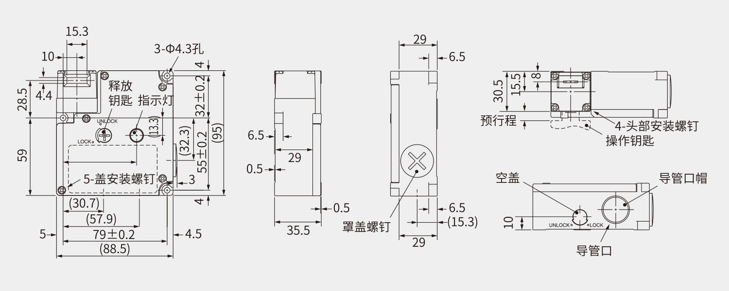 强制断开预行程*4 最小10mm(EN 60947-5-1)