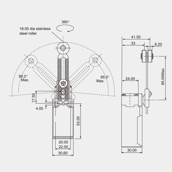 摇臂转换分角度 22.5° 22.5° 22.5° 22.5°