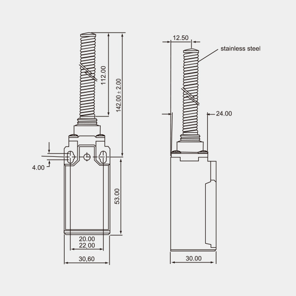 3、带弹簧系列产品,操作体的使用范围为从弹簧的前端到弹簧全长的 1/3 以内。
